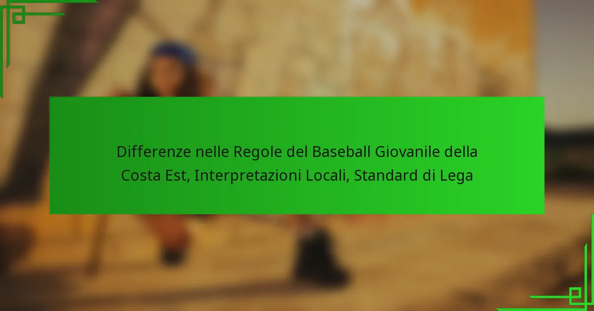 Le leghe di baseball giovanile sulla Costa Est mostrano differenze notevoli nelle regole che influenzano il gioco, l’idoneità dei giocatori e le affiliazioni delle leghe. Comprendere queste distinzioni è fondamentale per giocatori, allenatori e genitori per navigare efficacemente i vari standard delle leghe.