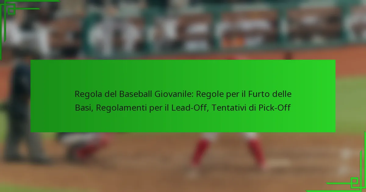 Regola del Baseball Giovanile: Regole per il Furto delle Basi, Regolamenti per il Lead-Off, Tentativi di Pick-Off