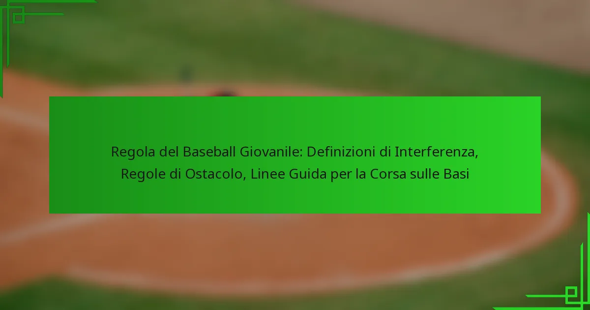 Regola del Baseball Giovanile: Definizioni di Interferenza, Regole di Ostacolo, Linee Guida per la Corsa sulle Basi