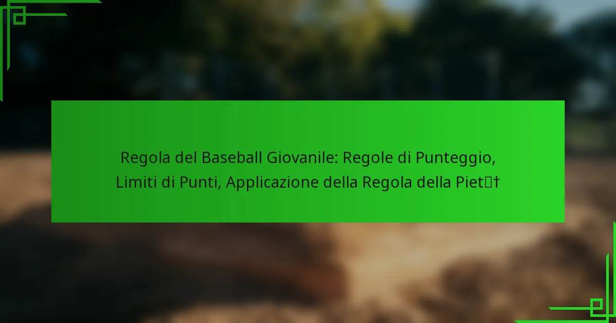 Regola del Baseball Giovanile: Regole di Punteggio, Limiti di Punti, Applicazione della Regola della Pietà