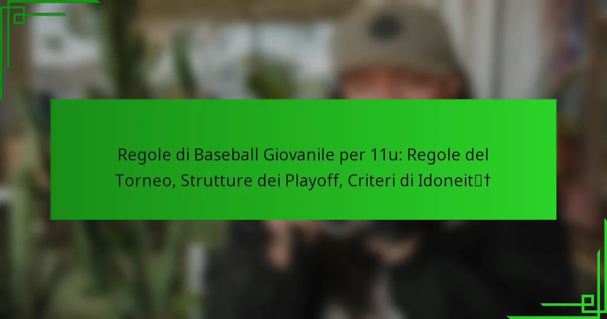 Le regole del baseball giovanile per i tornei 11u sono stabilite per promuovere una competizione leale e fornire un ambiente strutturato per i giovani giocatori. Queste normative comprendono la durata delle partite, i limiti di lancio e linee guida uniche per i tornei che differiscono dal gioco della stagione regolare. Inoltre, comprendere le strutture dei playoff e i criteri di idoneità è fondamentale per le squadre che mirano a competere in modo efficace e soddisfare tutti i requisiti necessari.