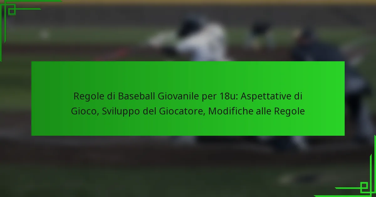 Regole di Baseball Giovanile per 18u: Aspettative di Gioco, Sviluppo del Giocatore, Modifiche alle Regole