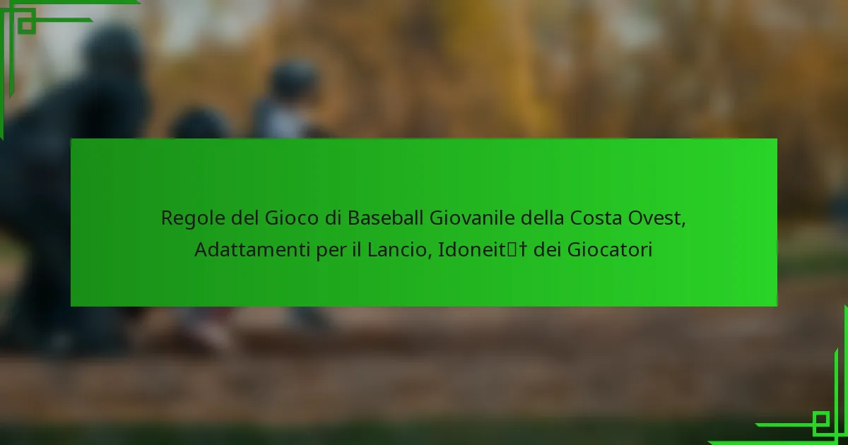Il baseball giovanile sulla Costa Ovest è regolato da regole di gioco uniche che differiscono dagli standard nazionali, rendendo importante per giocatori, allenatori e genitori familiarizzare con queste normative. Inoltre, le adattamenti al lancio si concentrano sulla sicurezza dei giocatori e sullo sviluppo delle abilità, incorporando regole basate sull’età e limitazioni sul numero di lanci. Comprendere i criteri di idoneità dei giocatori, inclusi i limiti di età e i requisiti di residenza, è essenziale per garantire una partecipazione adeguata nelle leghe locali.